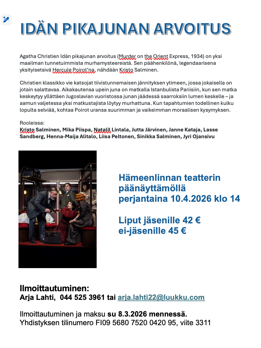 Muutin Hämeenlinnaan eläkepäiviä aloittamaan reilu kymmenen vuotta sitten. Piti keksiä mielekästä tekemistä. Löysin tietoa erilaisista vapaaehtoistehtävistä. Seurakunnasta löytyi puuaskarteluryhmä, jossa olen saanut jatkaa mieleistä näpertelyä. Löytyi Vapaaehtoiskeskus Pysäkki, jossa on tarjolla monenlaista. Liki jokaiselle mahdollista on esimerkiksi ulkoilukaveruus tai muu yhteydenpito sitä kaipaaville.